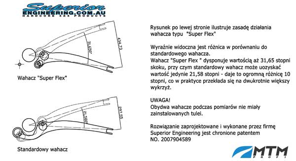 Wahacze przednie SuperFlex« Nissan Patrol Wahacze przednie "Super Flex" - wykonane z najwyższej jakości materiałów - zaprojetowane i wykonane jako dużo mocniejsze od oryginału z myślą o ekstremalnych zastosowaniach.
