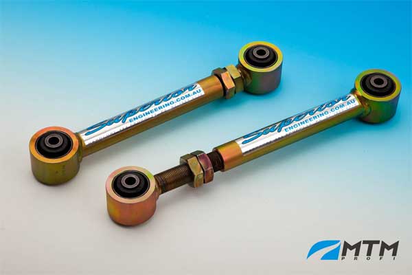 Wahacze wykonane są z najwyższej jakości materiałów, zabezpieczone antykorozyjnie metodą galwaniczną. Charakteryzują się solidną konstrukcją i dużym zakresem regulacji. Wahacze zaprojektowano i wykonano jako dużo mocniejsze od oryginału z myślą o najbardziej ekstremalnych zastosowaniach. Wahacz umożliwia regulację kąta główki mostu oraz w połączeniu z dolnym regulowanym wahaczem regulację rozstawu osi - pozwalając na uzyskanie indywidualnych nastawów zawieszenia.